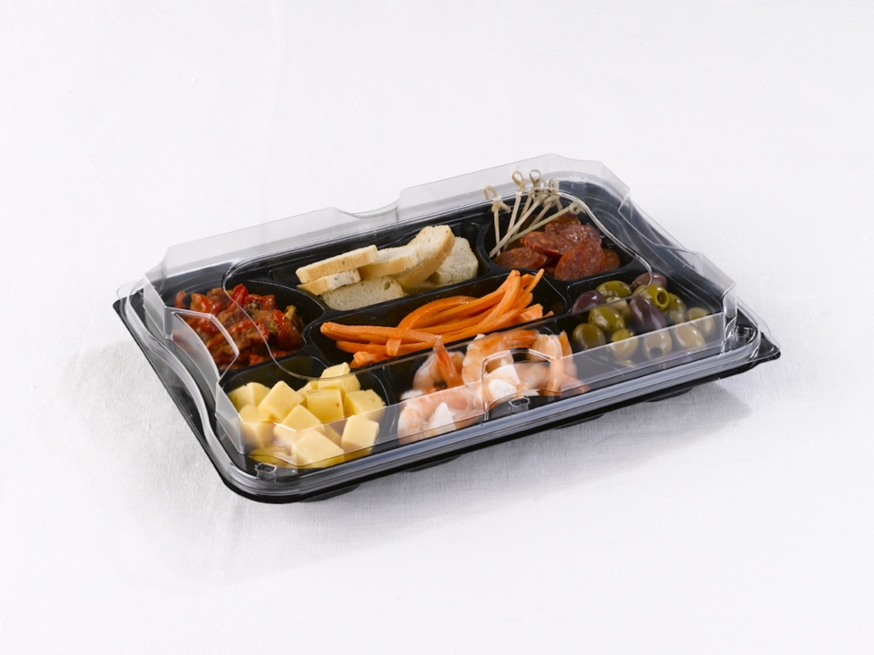 Für jede Plattenschale ist auch ein passender Deckel mit einem sehr effizienten Verschlusssystem und hervorragender Stapelbarkeit erhältlich, was einen sicheren Transport der Speisen garantiert.