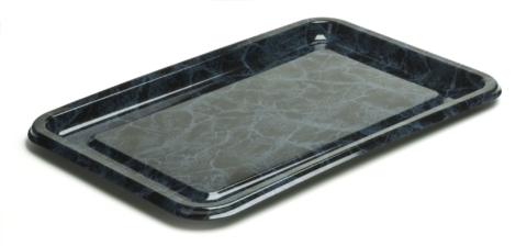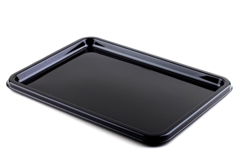 > Unsere Kunststoff-Servierplatten sind beständig gegenüber flüssigen, nassen und fettigen Speisen, bewahren ihre Festigkeit und eignen sich für alle Arten von kalten Speisen.