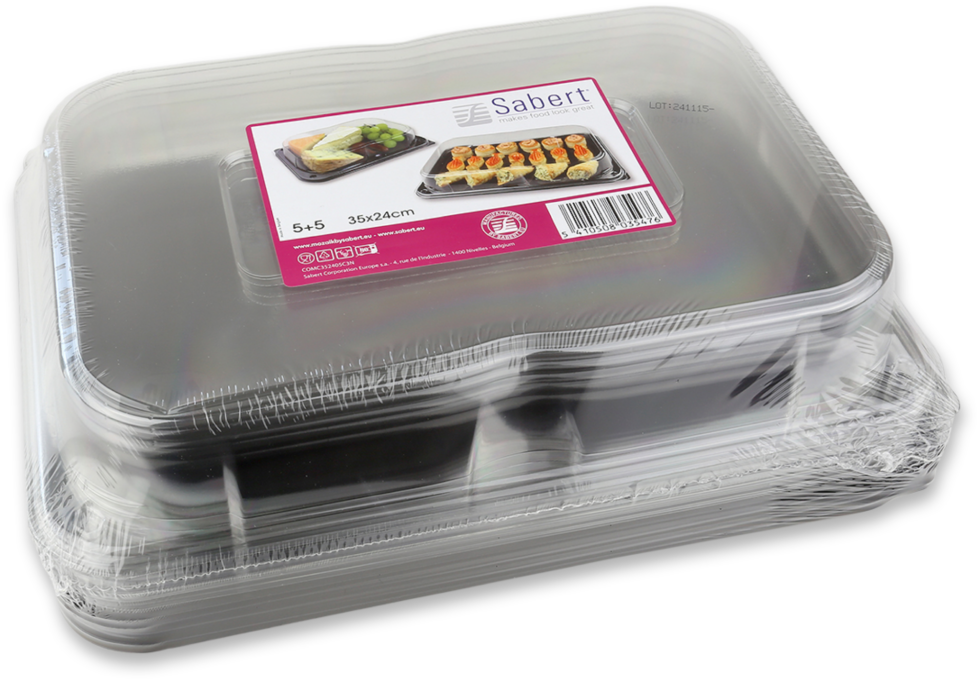 > Das einzigartige Design von Sabert, wie beispielsweise das ultrasichere System mit Stülpdeckeln der Ultimate- und Gourmet-Servierplatten hilft Zeit zu sparen.