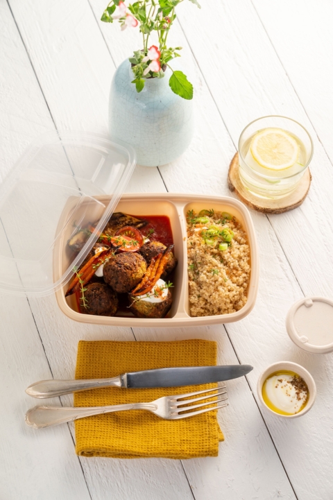 Mikrowellengeeigneter PP-Deckel, passt perfekt zu den rechteckigen FastPac-Behältern mit 2 Fächern 900 ml. Unsere Polypropylen-Abdeckung ist eine vollständig hitzebeständige und mikrowellengeeignete Lösung. Der PP-Deckel ist von hoher Qualität und besteht zu mindestens 30 % aus recyceltem Material. Er bietet eine hervorragende Produktsichtbarkeit in Regalen.