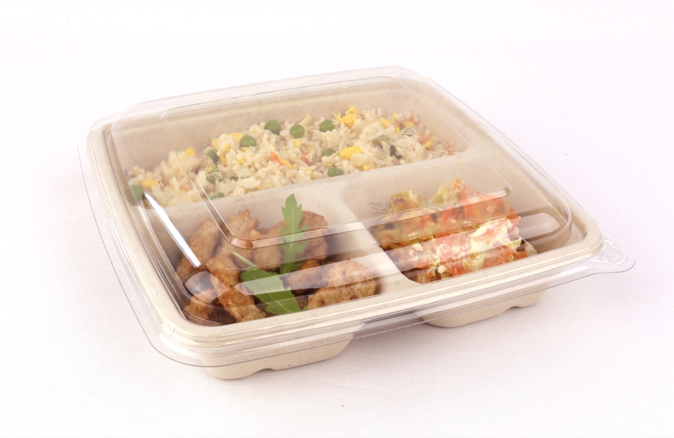 - Nom Barquette carrée avec 3 compartiments 900ml 23x23cm