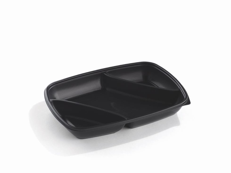 - Nom Boite rectangulaire noire 3 compartiments 975ml 28x20cm