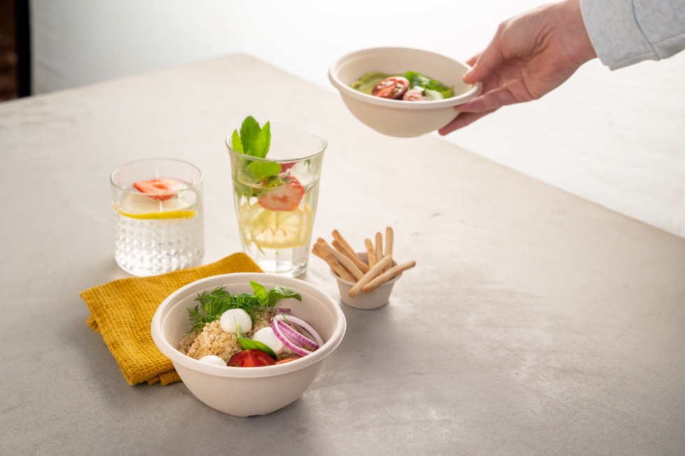 Toute la gamme d'emballages alimentaires Bepulp HC est compostable à domicile et recyclable. Elle offre de nombreux usages (bol à salade, poke bowl, boite à pâtes,...). Ils sont prêts à être utilisés sur la table et conçus pour résister à toutes les conditions, du congélateur au four. Sabert fabrique à la fois les bases et les couvercles, ce qui garantit un ajustement optimal du couvercle et une résistance aux fuites. Pour des utilisations multiples, vous avez le choix entre trois couvercles : les couvercles en pulpe (entièrement recyclables), les couvercles en PET (pour une excellente visibilité du produit) et les couvercles en PP résistants à la chaleur.