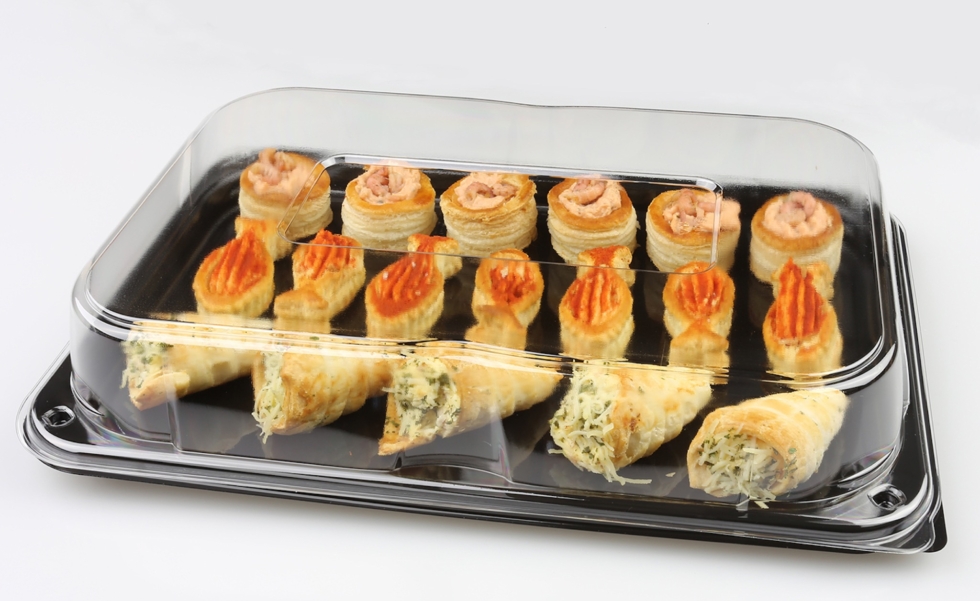Un couvercle adapté est également disponible pour chaque solution de plateau, avec un système de fermeture très efficace et une excellente empilabilité, ce qui garantit un transport sécurisé des aliments.