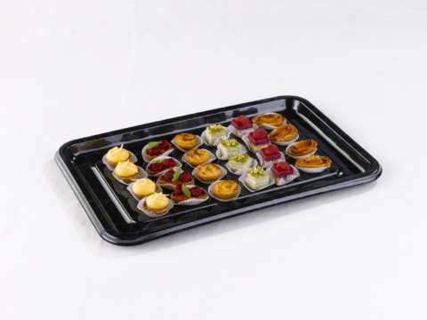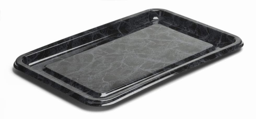 Sabert propose le plus grand assortiment de plateaux traiteurs avec couvercles en PET recyclés et recyclables, avec un très grand choix de design, de couleurs et de dimensions. Grâce à un procédé de lamination exclusif, les plateaux de présentation Sabert noirs, marbrés, mais aussi argentés offrent des rendus exceptionnels avec une illusion parfaite des plateaux en acier inoxydable et des plateaux de restauration réutilisables.