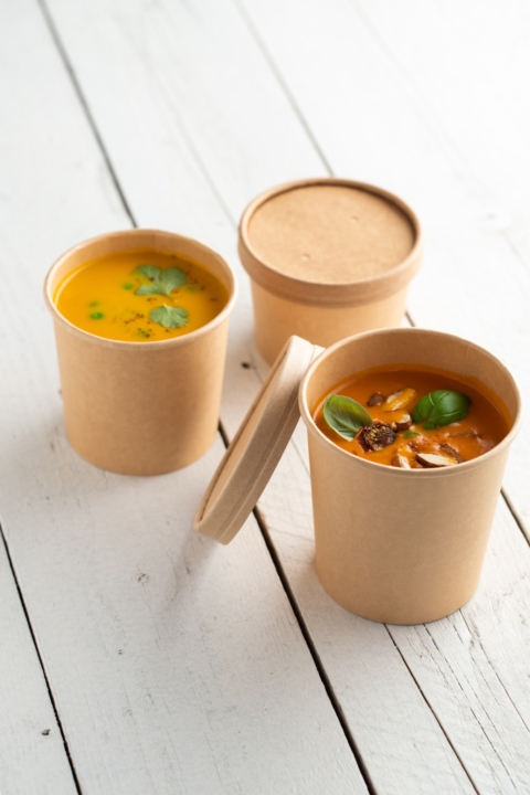 Disponible en 4 tailles différentes, notre bol carton multi-usage est l'emballage alimentaire parfait à utiliser comme bol de soupe, boite à pâtes, bol à salade, ... Ils sont faciles à ouvrir, à fermer, à tenir, à remplir et utiliser. Grâce à son étanchéité, sa solidité de couvercle et à sa capacité à contenir des aliments chauds et froids, cette gamme est un excellent choix pour une variété d'applications de nourriture à emporter.