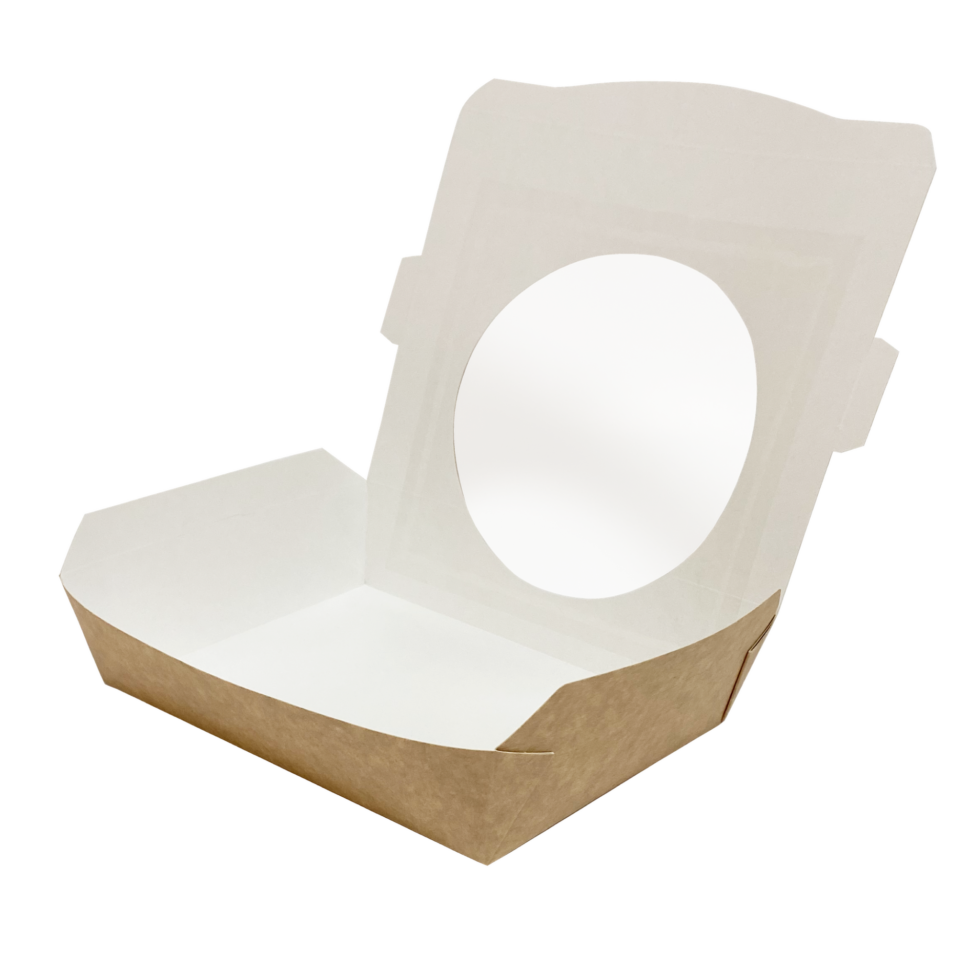 Our multi-food salad boxes fulfil all gourmet requirements. Featuring large display windows for stand out product presentation and with secure clip locking lid designs, hey are ideal and practical for food preparation, storage, transport, display and service. Delivered nested. Customizable for bespoke print and branding!