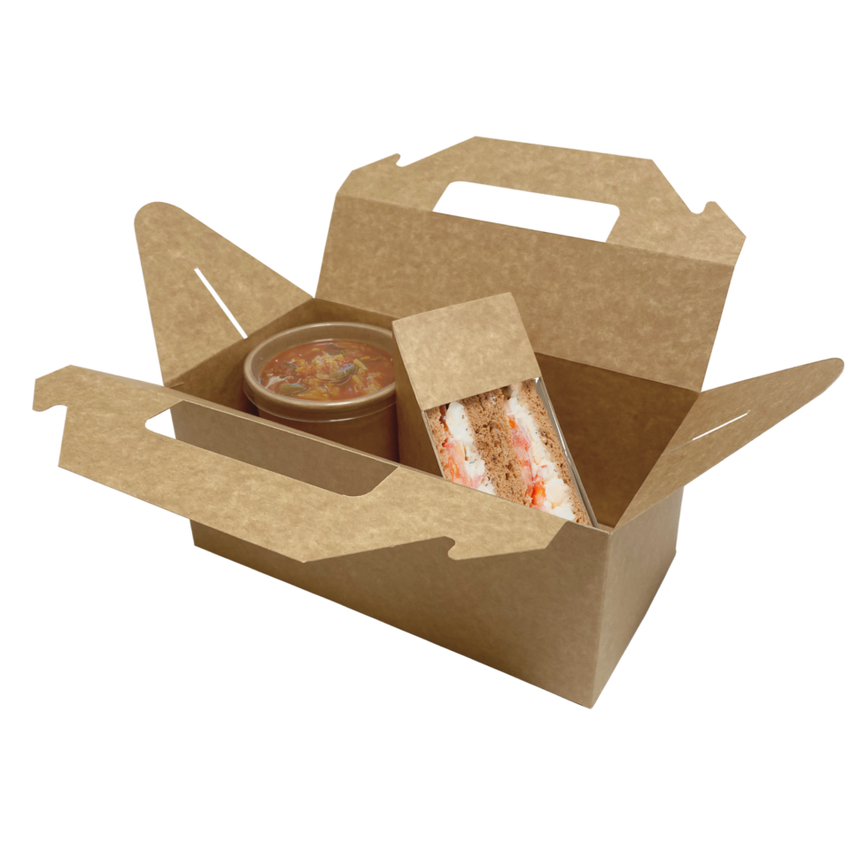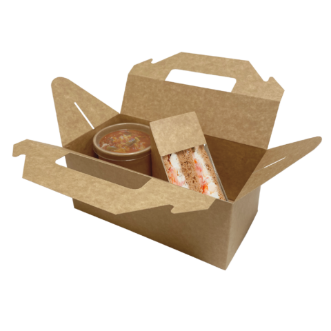 Versatile lunch box perfect for a wide range of food & drinks receptacles and sizes. Box is easy folding to save time and nested / stackable trays flat pack box.