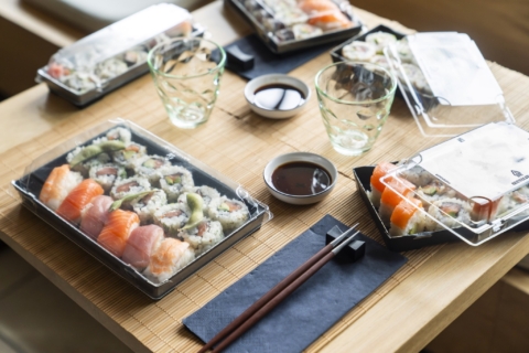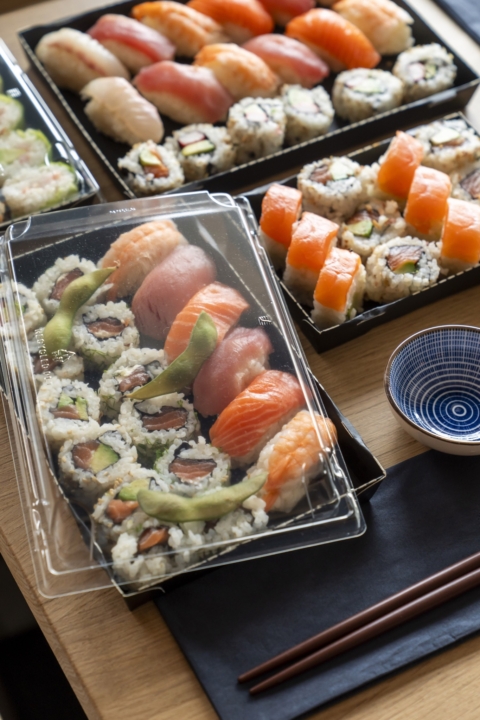 Our new sustainable cardboard tray, your new sushi tray or the platter tray for any chilled food-to-go including confectionery and bakery products. Practical to use, our multifunctional and versatile cardboard tray Tray2Go range features a robust doublewall tray and an anti-fog rPET lid, perfectly nestable and designed for secure stacking, while retaining excellent product visibility. The innovative and patented secure fitting high-clarity click-lock lid locks securely in place, offering great product protection for food-on-the-go and delivery, and enables fast closure for more efficient preparation in the manufacturing process.