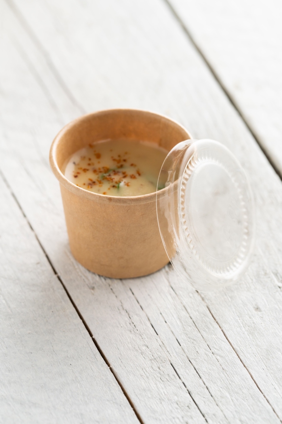 PET clear lid that perfectly fits our 1oz sauce pot. Choose our anti-fog PET lids that ensure your food remains on show at all times. The PET lid ensures maximum product visibility.