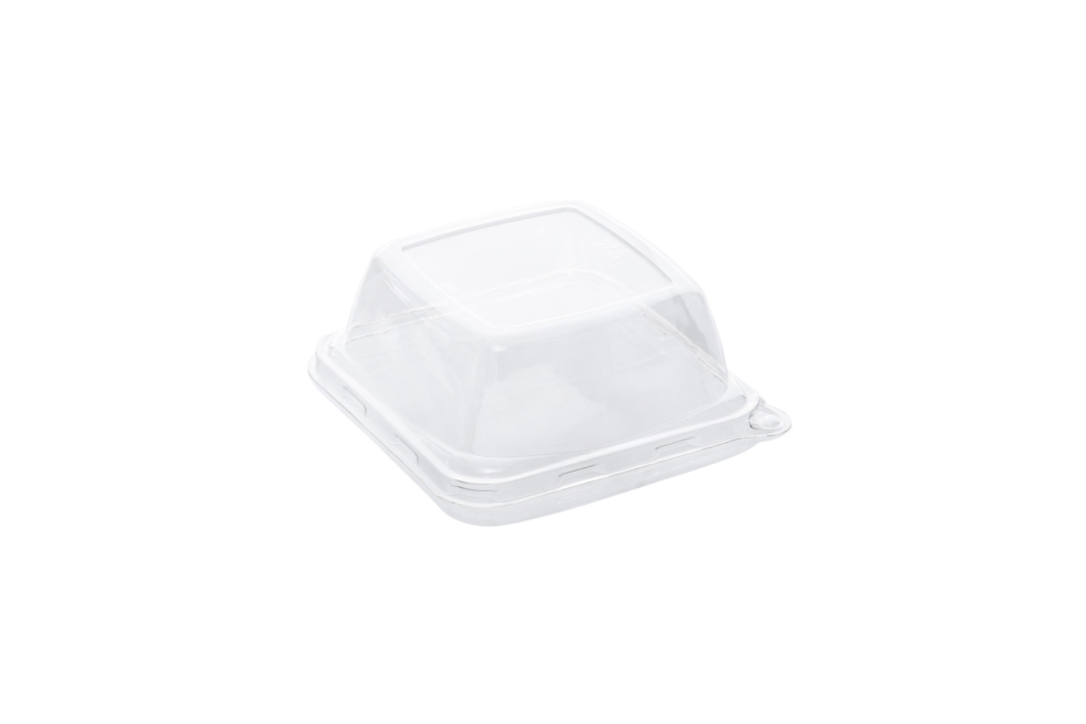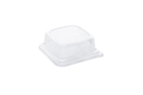 PET lid that perfectly fits the Grab & Go Square tray 14x14cm. Choose our anti-fog PET lids that ensure your food remains on show at all times. The PET lid ensures maximum product visibility.