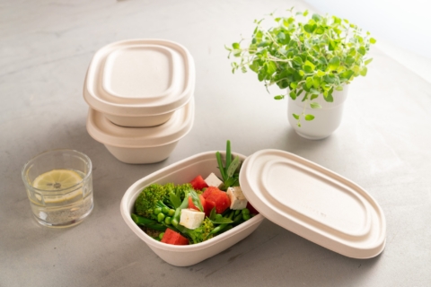Pulp lid that perfectly fits Eco Street Oval Bowl 19x15cm for a recyclable packaging solution. Go fo a natural plant based pulp lid and stay sustainable!