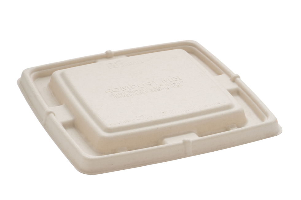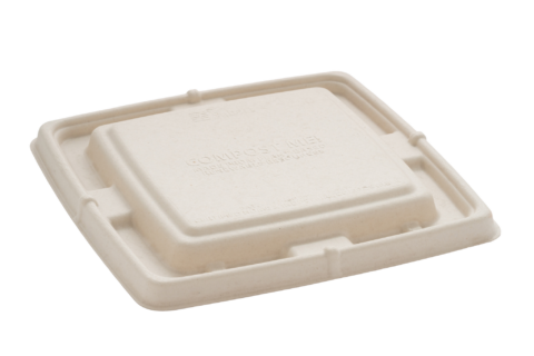 Pulp lid that perfectly fits the Bepulp square tray 23x23cm for a recyclable packaging solution. Go fo a natural plant based pulp lid!