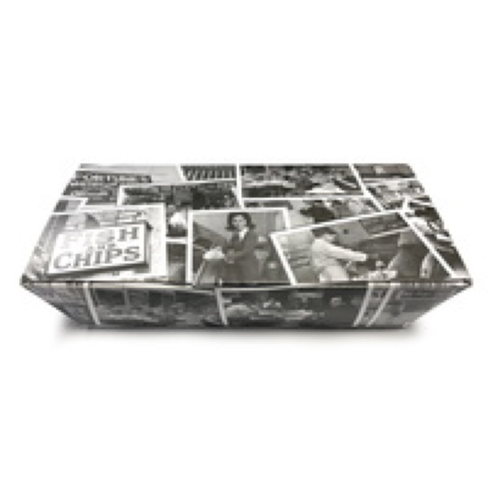 Who can remember not so long ago when takeaway fish and chips were wrapped and served in yesterday’s newspaper? ’Retro Newsprint’ captures this Great British nostalgia with a simply genius printed newspaper style packaging design! What better way to serve crispy battered fish and tasty golden chips than in the Retro newsprint range... this British favourite has never looked so good!