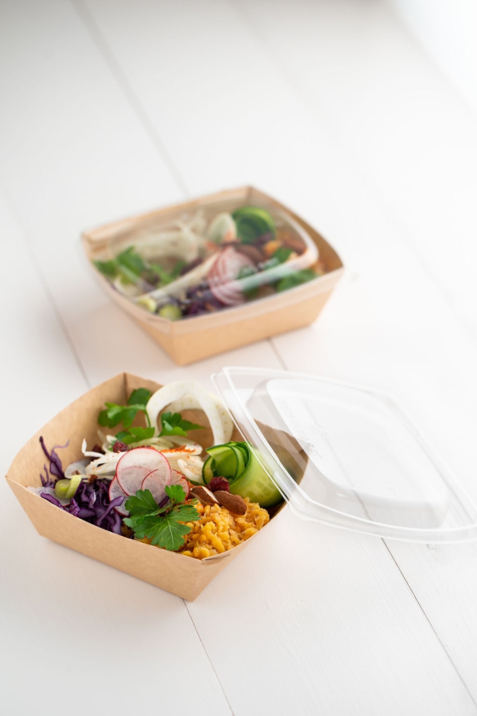 High clarity rPET lid that perfectly fits the Snap2Go Trays 750 & 1000ml. Choose our anti-fog post consumer recycled PET lids that ensure your food remains on show at all times. The rPET lid ensures maximum product visibility and is made from at least 50% recycled materials.